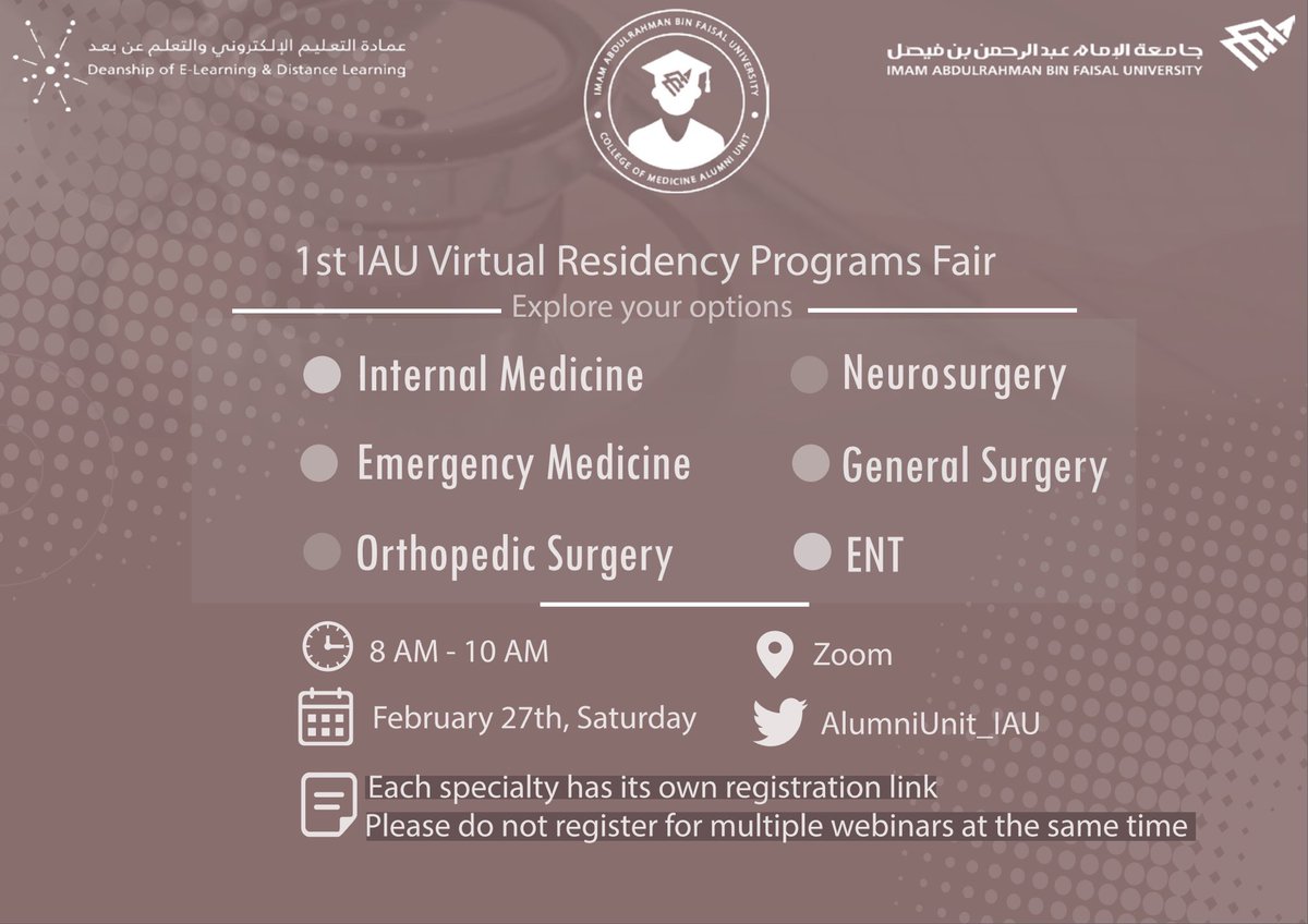 🌟اللقاء من تنظيم كلية #الطب بجامعة #المجمعة والتسجيل "مجاني" 💻
