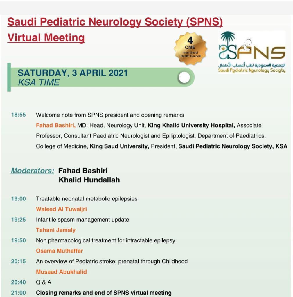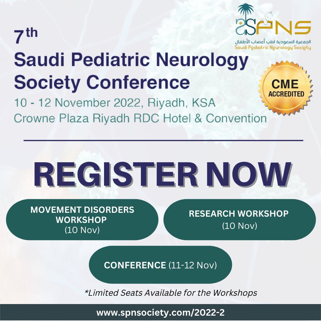 لايفوتكم التسجيل بمؤتمر الجمعية السعودية لطب أعصاب الأطفال والذي سيقام يوم الجمعة والسبت القادمين بالرياض 📌