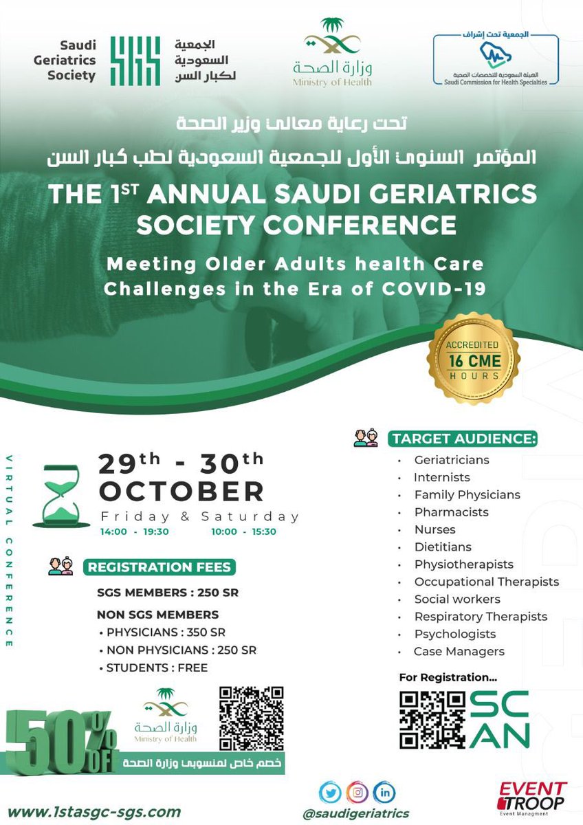 المؤتمر السنوي للجمعية السعودية للأمراض المعدية يقام يوم الثلاثاء القادم "حضورياً وعن بُعد" برسوم تسجيل 150ريال فقط!