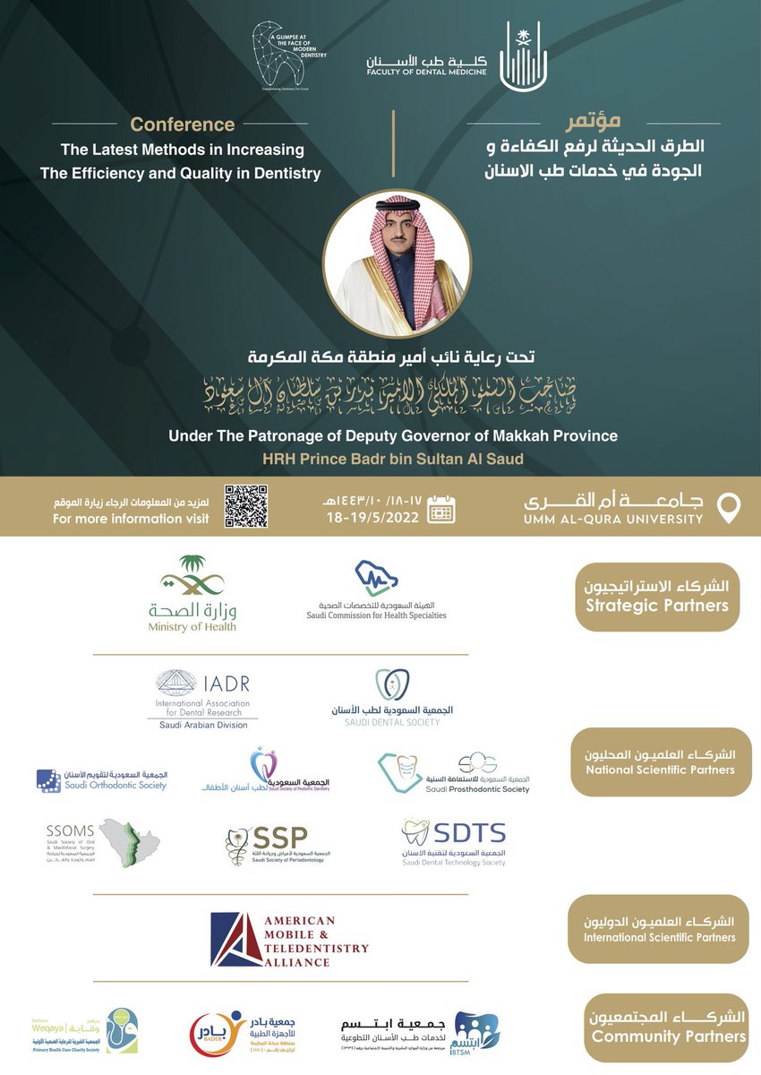 مؤتمر الطرق الحديثة لرفع الكفاءة والجوده في خدمات طب الاسنان يقام الاسبوع القادم بجامعة أم القرى وبساعات معتمده ✨