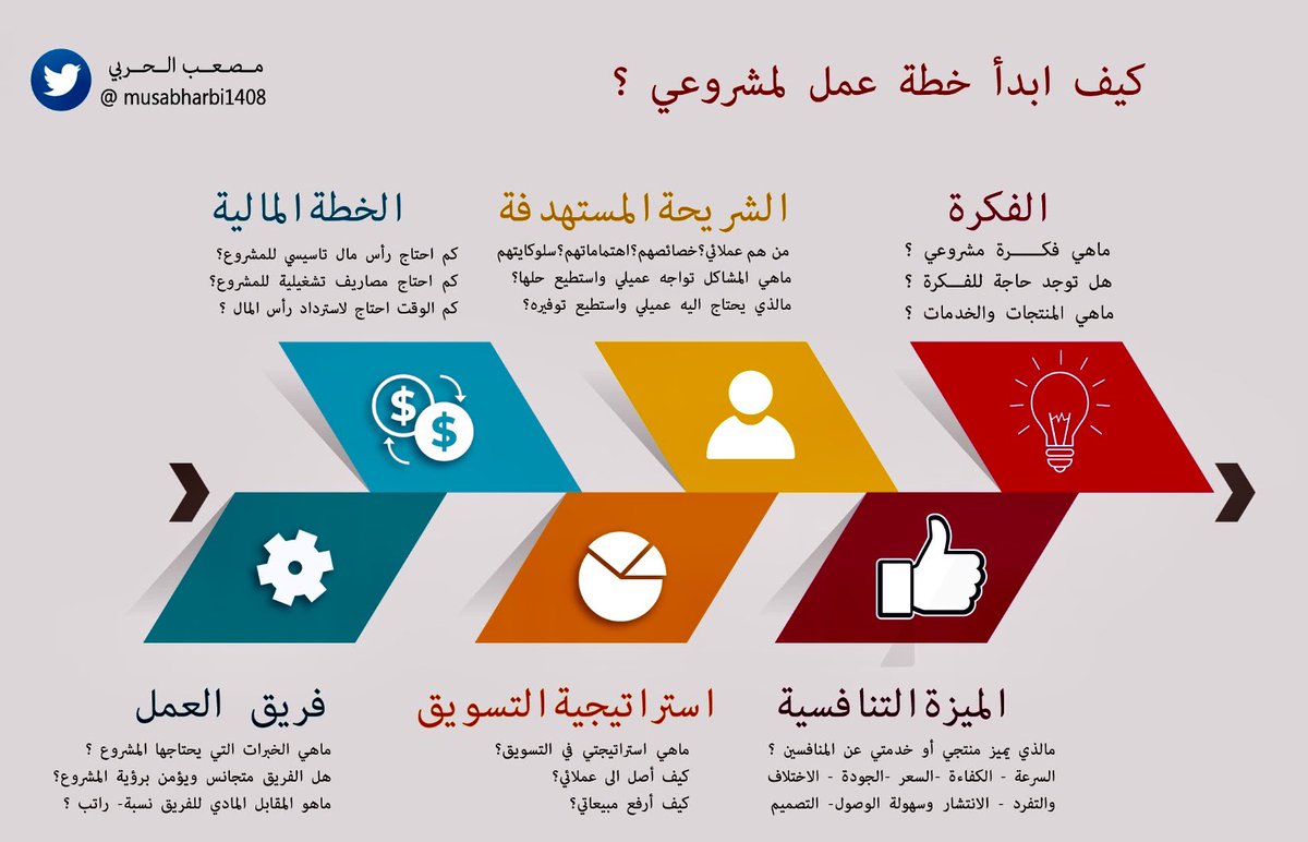 قبل انطلاقتك في التنفيذ لاي مشروع من المفترض ان تكون لك خطة عمل واضحه لمشروعك تجنبا لاهدار الجهد والوقت ومن اهم بنود تلك الخطه مايلي :