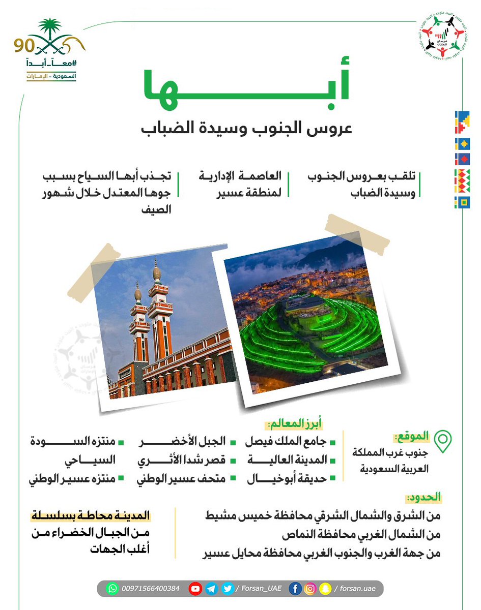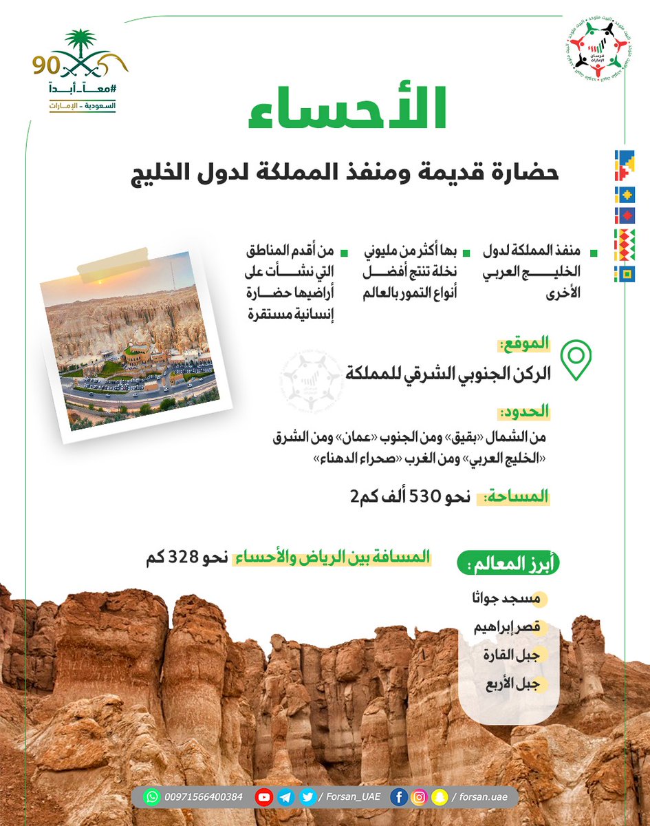 احتفاء بـ #اليوم_الوطني_الـ90 للمملكة العربية #السعودية.. تشارك مجموعة "فرسان الإمارات" الأشقاء في المملكة باحتفالاتهم بهذا اليوم العزيز، عبر نشر 90 "إنفوجراف" عن أبرز المدن والبلدات والمحافظات السعودية