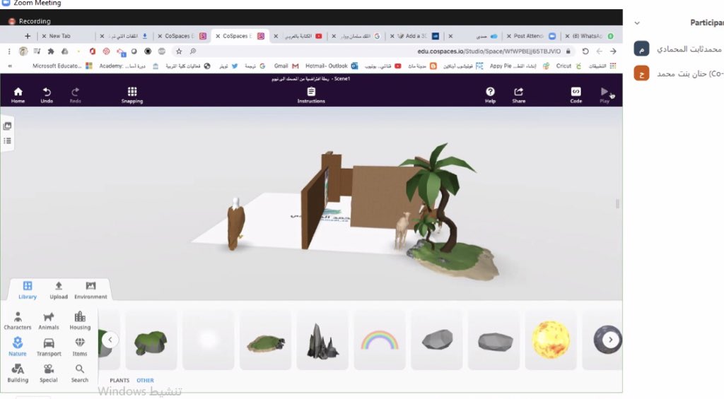 المراحل الأولية للمشروع كانت بمنصة @CoSpaces_Edu لتصميم وإنتاج وبرمجة الواقع الإفتراضي والمعزز