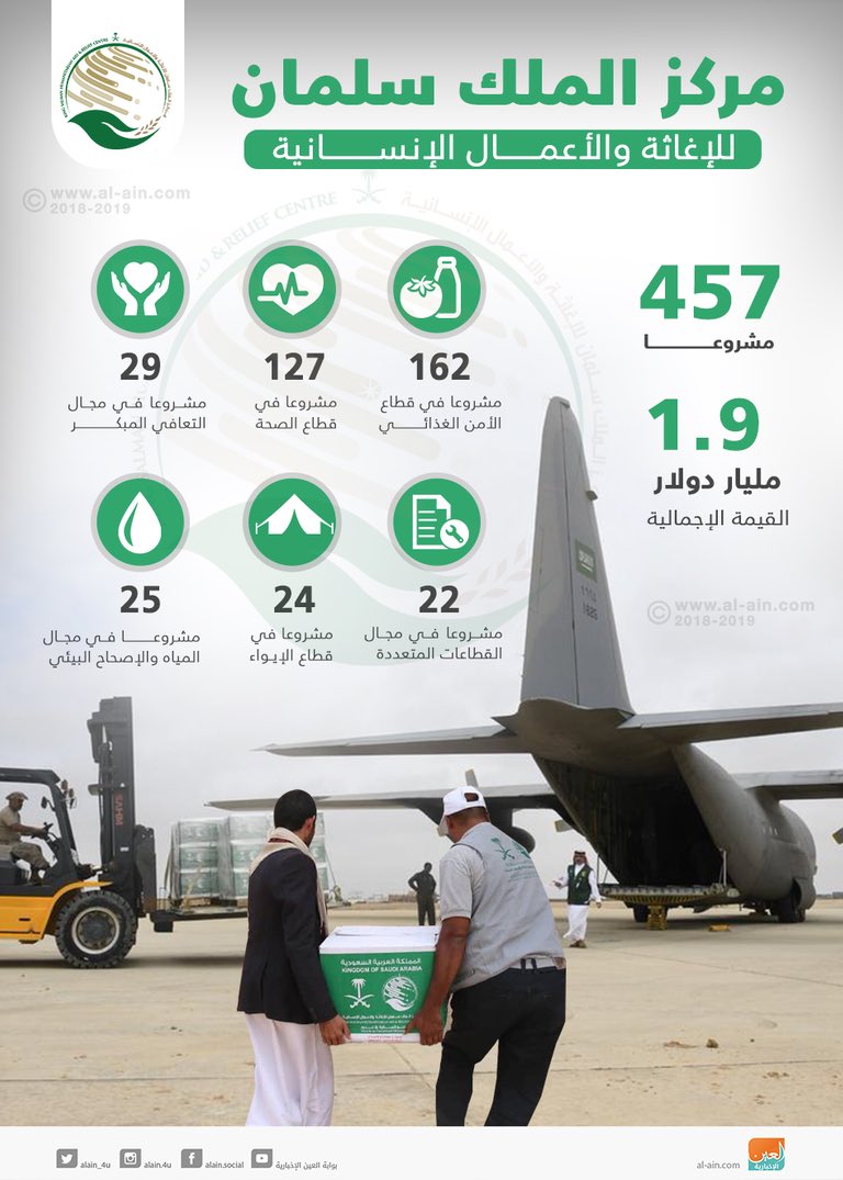 المملكة العربية #السعودية من أكبر الدول في تقديم المساعدات الإنسانية في العالم
