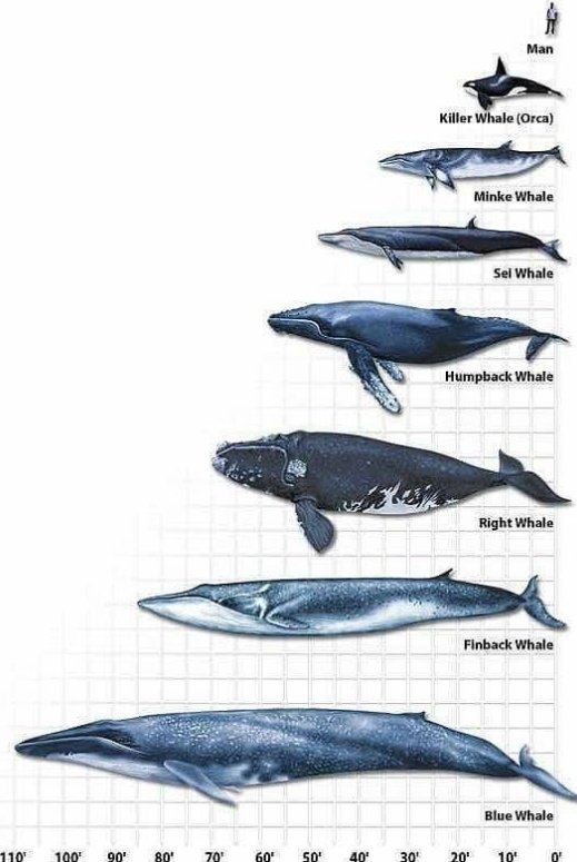 انواع الحيتان كتير واحجامها بتتراوح من 2 متر زي حوت العنبر القزم ل 30 متر زي الحوت الأزرق. بس كل هدول الحيتان الهم صفات مشتركة راح احكي عنها بهالثريد وراح احكي عن بعض الحيتان المختلفة: