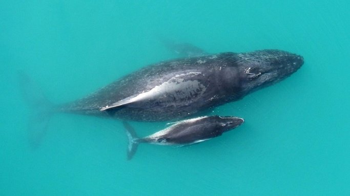 مدة حمل الحيتان بتتراوح بين 10-13 شهر. وابن الحوت الأزرق لما ينولد بكون طوله 7 متر و وزنه طنين. وكل يوم ابن الحوت بزيد وزنه 85 كيلو. عشان حليب الام فيه 40٪ دهون مقارنة بحليب البقر الي بكون بس 3-5٪ دهون. و أنثى الحوت قادرة على إنتاج 190 لتر حليب يوميا