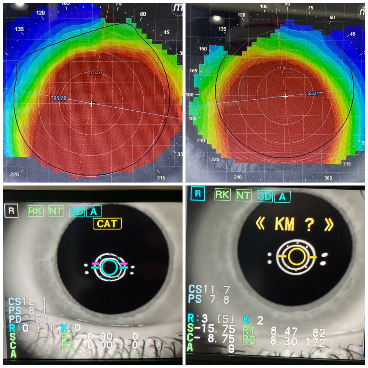 رغم إنتظامه المستمر لمواعيد المتابعة في المستشفى المختص الا انه لم يتم توجيهه للاسف لعمل عملية تثبت القرنيه في الوقت المناسب ! السبب ان انه في كل زياره يأخذ عليه النظر بالعدسات الصلبه الصغيره ويكون ممتاز !! ولا يتم تصوير القرنيه او متابعتها بعذر ان المريض 👇