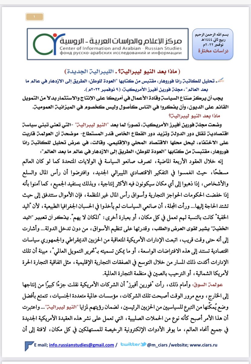 هذه التغريدة👆🏻 وما بعدها تناولت ملامح قراءة لمستقبل القوى الدولية، أمريكا ممثلة للاتجاه الغربي، ويقابلها ما اسميته "محور الشرق" وقوى شرق أوسطية فاعلة.