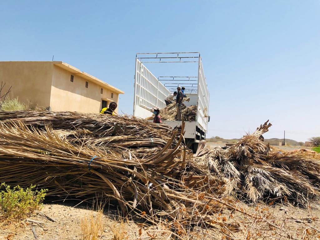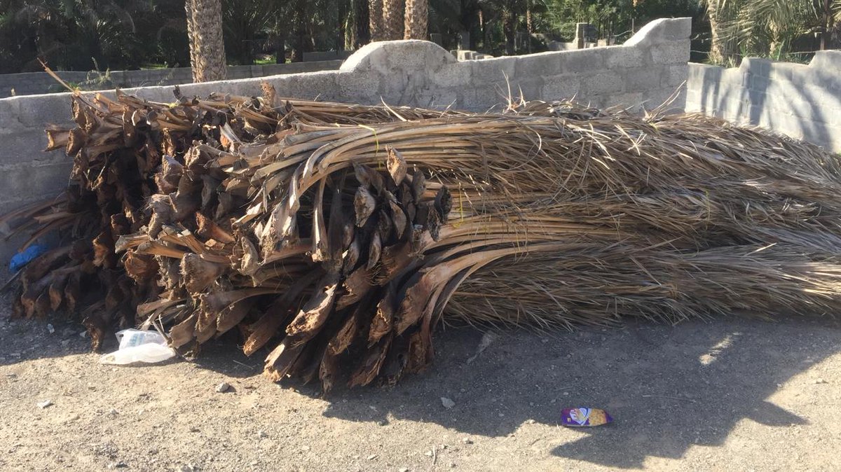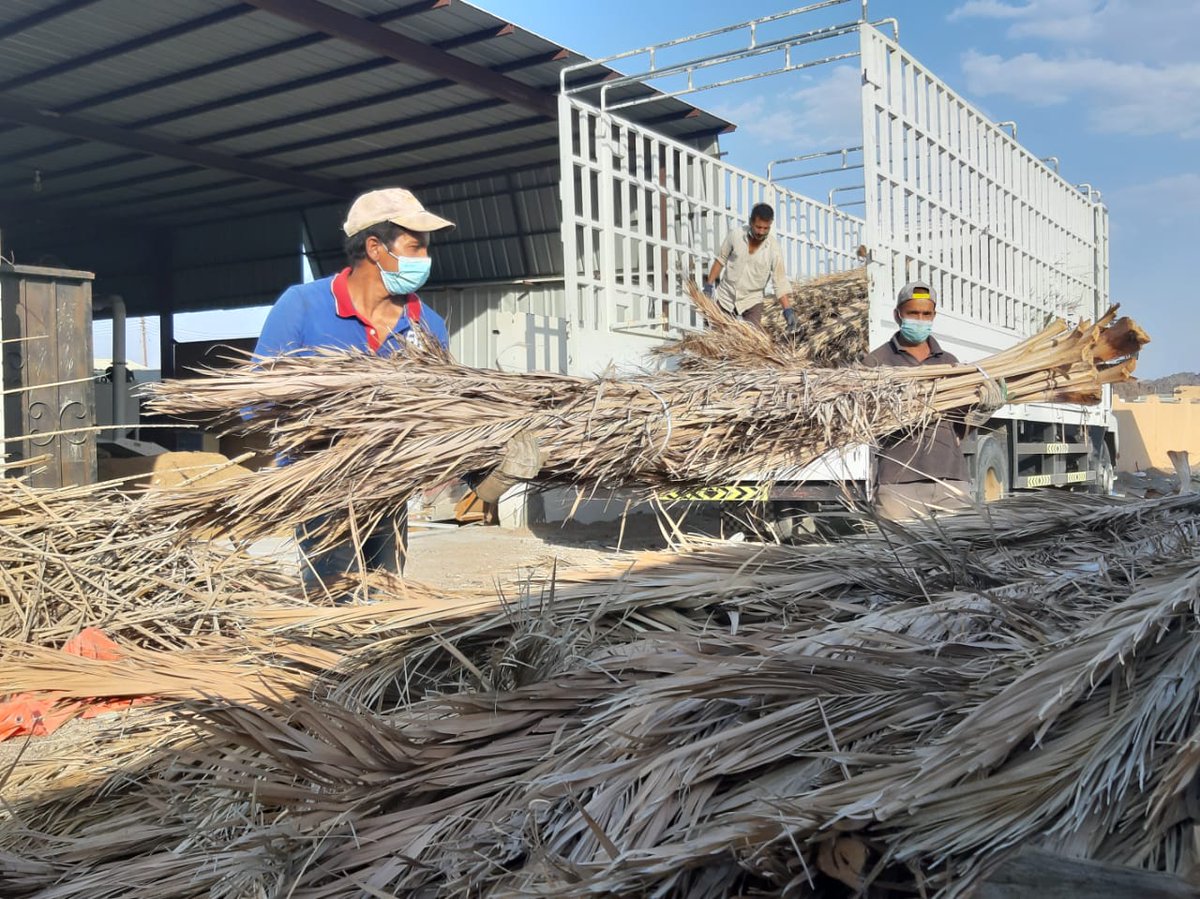 اليوم ولله الحمد تم تجميع اطنان من سعف النخيل والتي سوف نعيد تدويرها الى افضل المنتجات والخامات