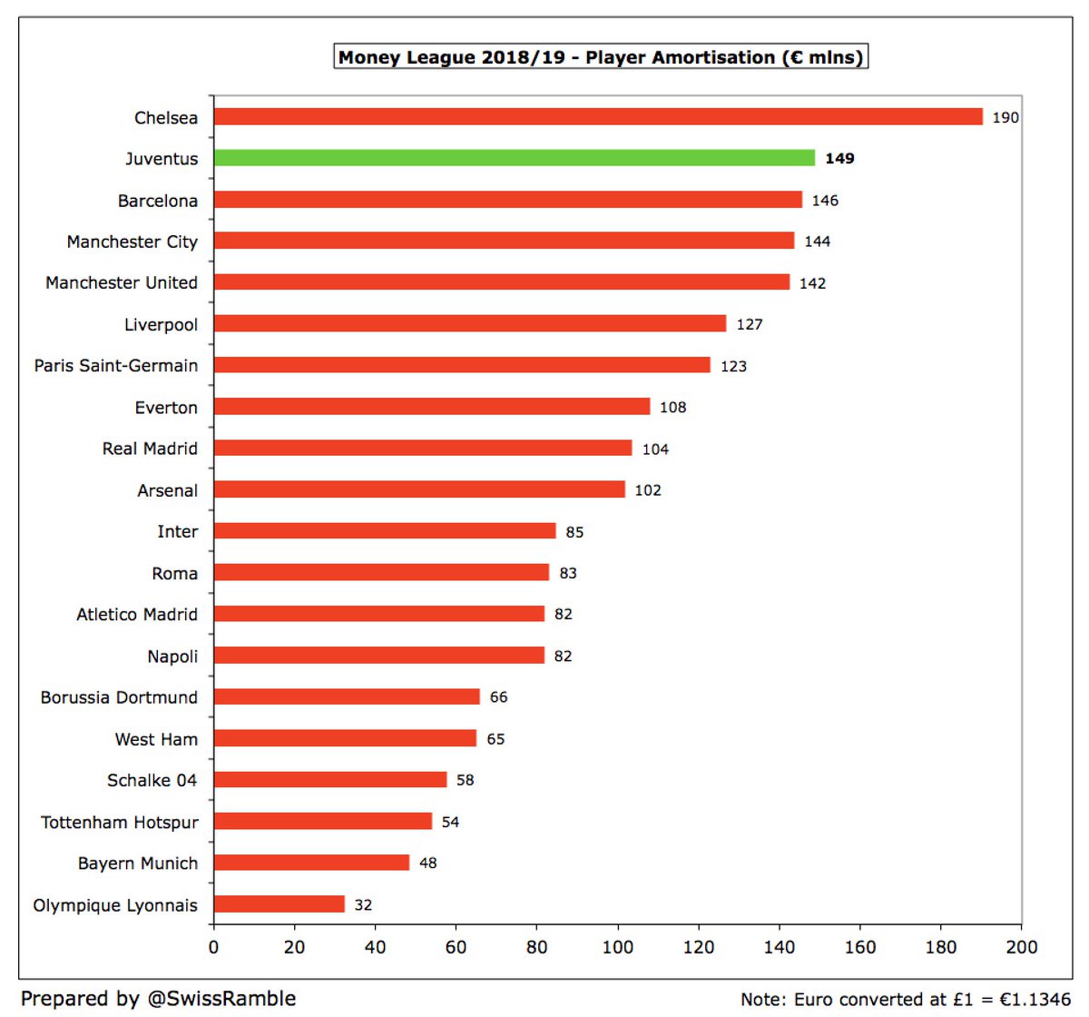 لنضعها في السياق، في السنة السابقة قيمة إهلاك لاعبي اليوفي ١٤٩م كانت أعلى من كل أندية أوروبا الا تشيلسي