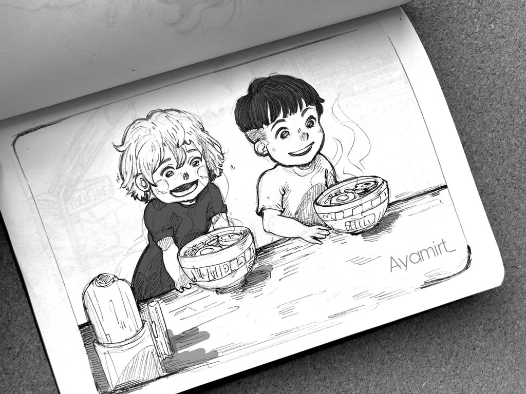 ماكانت فكرة كويسة اني ارسم رسمتين صغيرتين بصفحة وحد.. تو متش ديتيلز 🔍