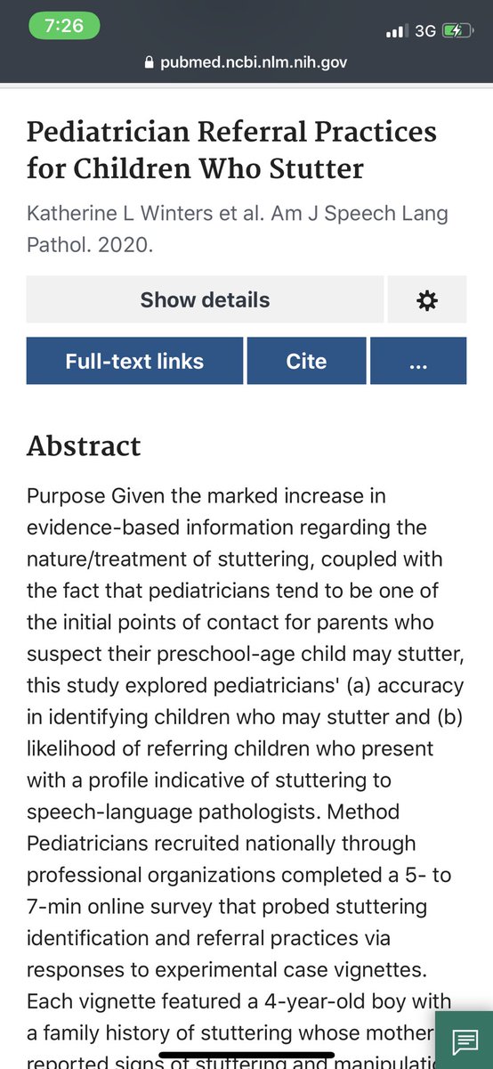 🔸Yairi and Carrico (١٩٩٢)، قاموا بعمل استبيان لاطباء الاطفال لمعرفة ما اذا يتم التحويل من قبلهم لاخصائي التخاطب اذا تم ملاحظة التلعثم على الاطفال، ووجدوا ان ٧٥٪ تقريبا ما يتبعون نهج (الانتظار والترقب) قبل التحويل.