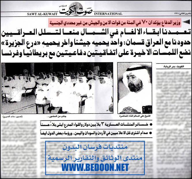 وبحسب تصريح وزير الداخلية الشيخ علي السالم أن ٧٠٪ من جيش الكويت هم من #البدون وبالتالي قطعاً هم ممن مثّلوا دولة الكويت في الحروب العربية بعد مرسوم الشيخ صباح السالم (الحرب الدفاعية) سنة ١٩٦٧ ومنهم من استشهد.