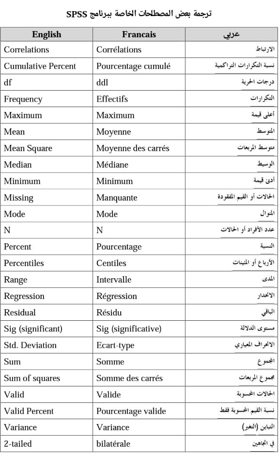 بعض المصطلحات المتعلقة ببرنامج SPSS