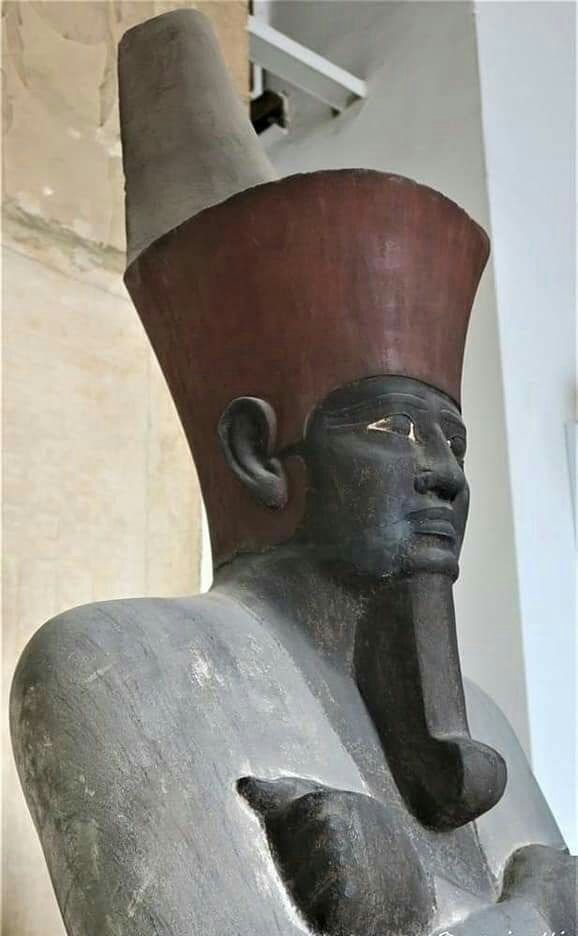 4-وهو مصبوغ باللون الأسود كامل ويرتدى الملك تاج الشمال الأحمر تاج مصر السفلى وله ذقن معكوفة من الآخر وملامح وجهه صارمة مما يدل على أنه كان ملك مؤله عند المصريين وكل هذه المظاهر تقرباً للإله أوزير حيث يُعتقد إن الملك بعد موته يذهب للعالم الأخر 👇