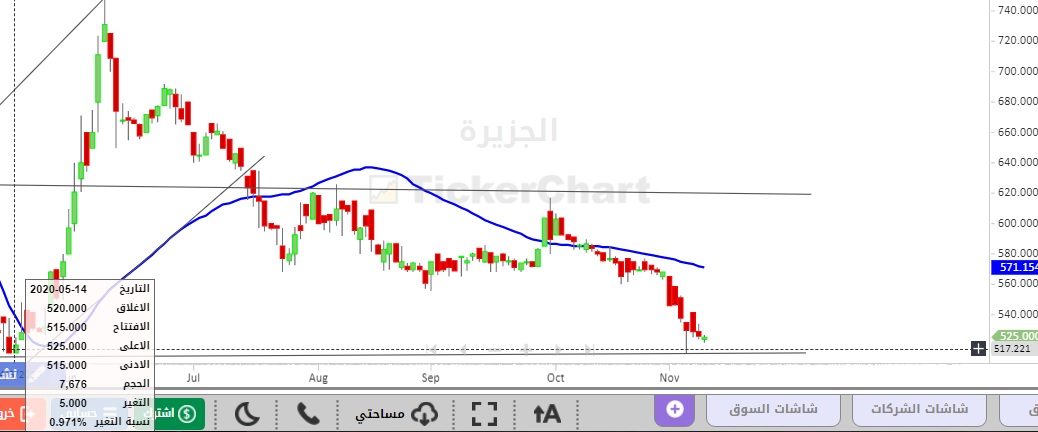 #الجزيرة يقترب من دعم قوي 515 ننتظر يحترم الدعم و يسكر فوقه بجلستين بعدها نشتري مع أخبار إيجابية إرتفاع النفط و لقاح Pfizer