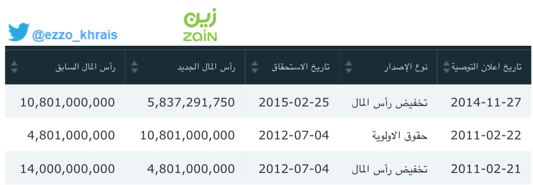 هذه المرة الثالثة التي تقوم #زين بتخفيض رأس المال ، والمرة الثانية تقوم بزيادة رأس المال:
