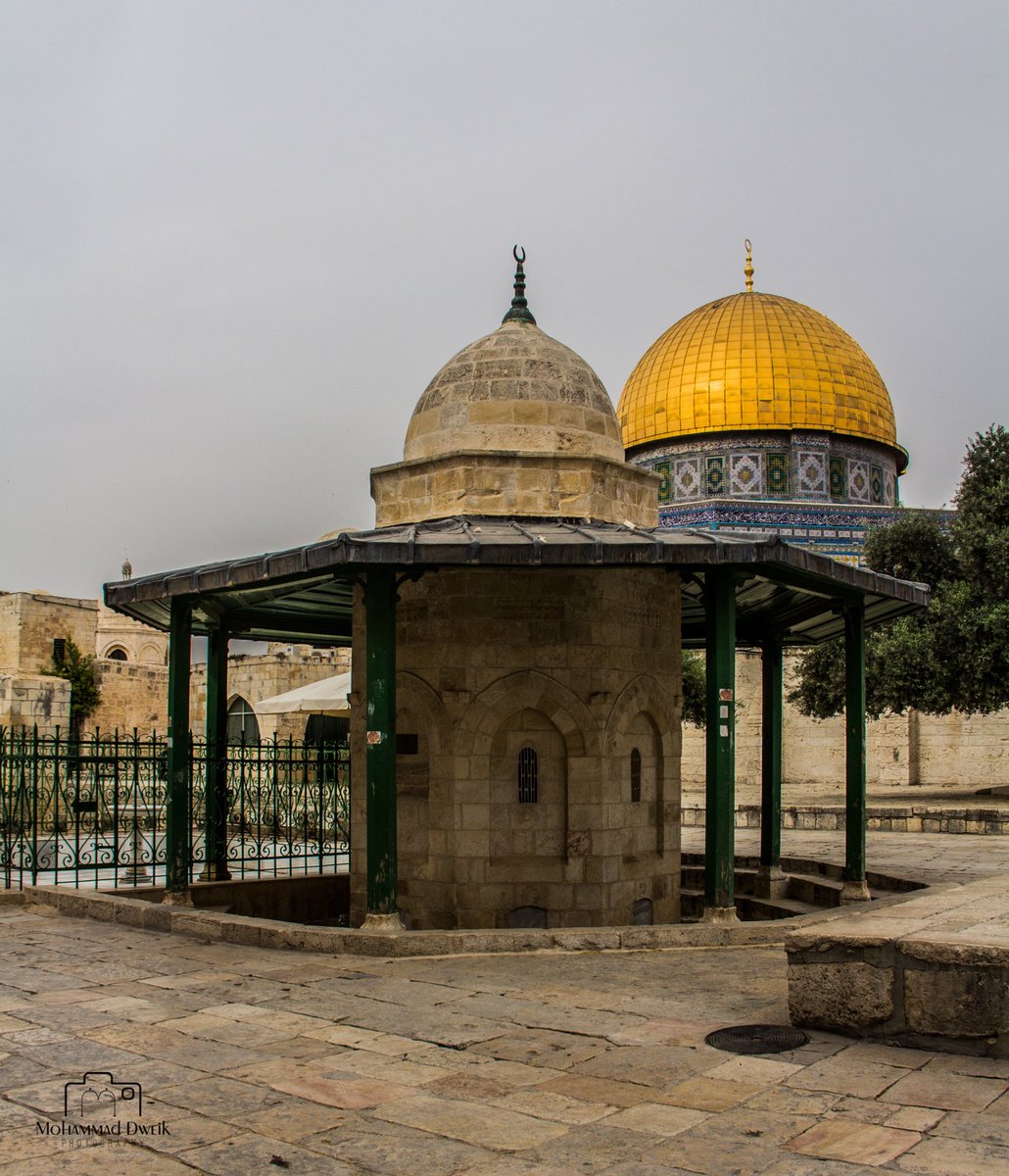 (يمين) صهريج الملك عيسى: بناه محمد بن عروة الموصلي زمن السلطان الأيوبي المعظم عيسى، يستخدم لتجميع مياه المطر النازلة على أرض صحن الصخرة عبر قنوات تصب في الصهريج.