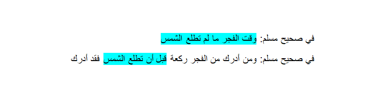 أن وقت الفجر ينتهي بطلوع الشمس،