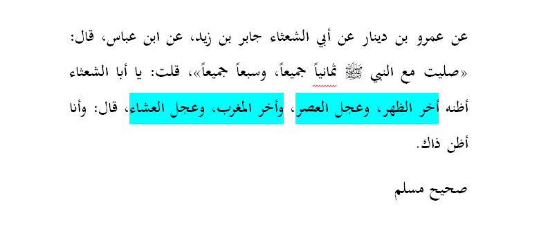 وأما الحديث الثاني، وهو جمع النبي ﷺ بين الظهر والعصر، والمغرب والعشاء، فهو حديث مجمل،