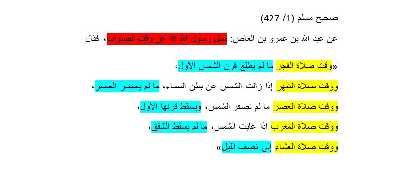 فترك الأحاديث الصحيحة الصريحة التي تنص على أوقات الصلوات وتحددها تحديداً دقيقاً،