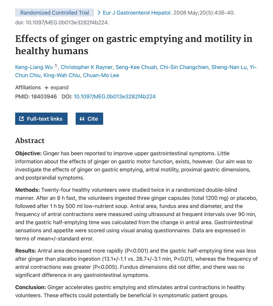 بدو أن الزنجبيل يسرع من إفراغ المعدة ، وهو ما يمكن أن يكون مفيدًا للأشخاص الذين يعانون من عسر الهضم وانزعاج المعدة المرتبط به.