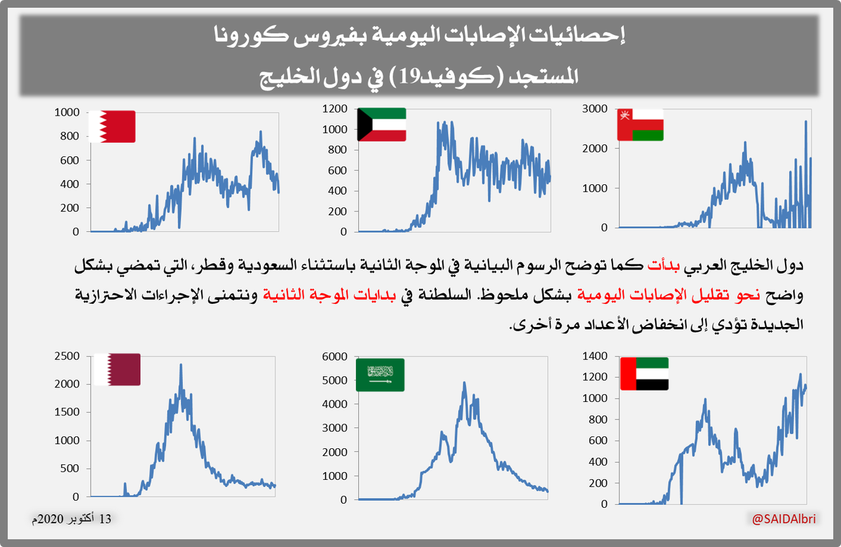 #دول_الخليج بدأت بتسجيل أرقام مرتفعة مرة أخرى، ومن ضمنها #السلطنة نتمنى أن تتسبب قرارات #اللجنة_العليا في خفض هذه الأرقام مرة أخرى.