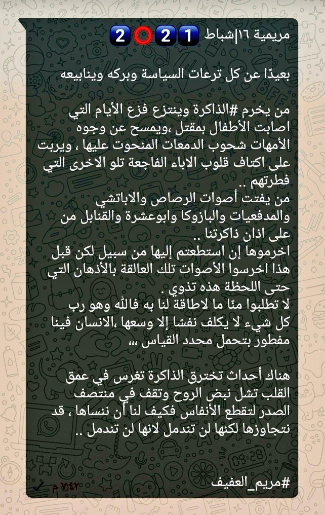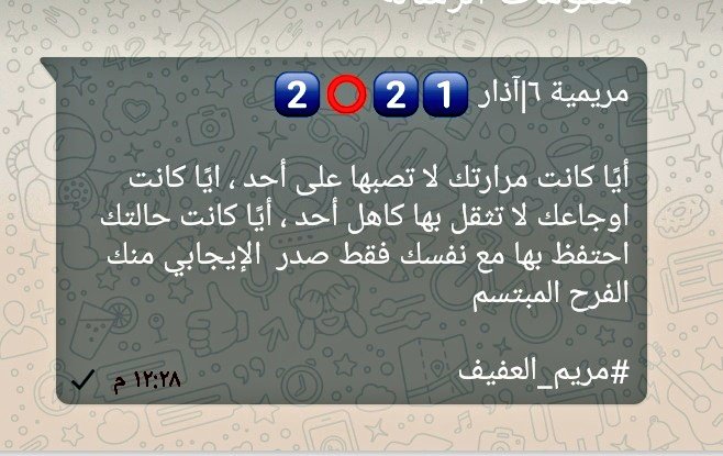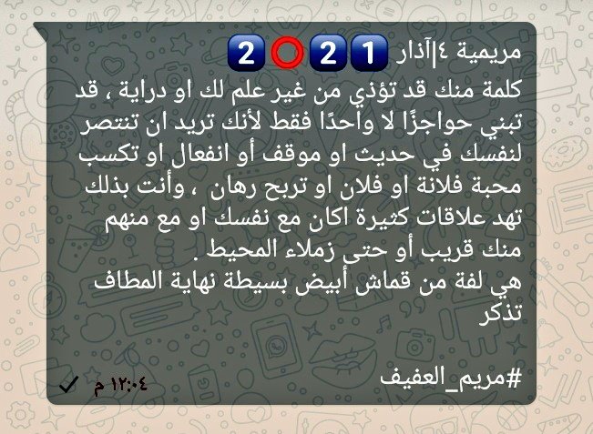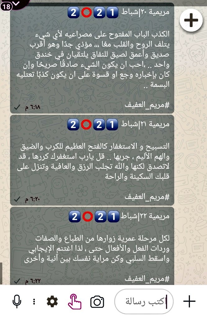 تواصلت مع بعض متابعي المريميات على الواتساب وكانت الدهشة بالنسبة لي أن هناك من يحتفظ بـ #مريميات_المدينة_المريمية التي حتى قبل ٢٠٢٠ ،، أُذهلت حقًا ولا اعلم بأي لغة أشكرهم ،قالت لي أمي اليوم حين رأت على ملامحي ذبول جراء قهري لفقدان نصوصي .... يتبع