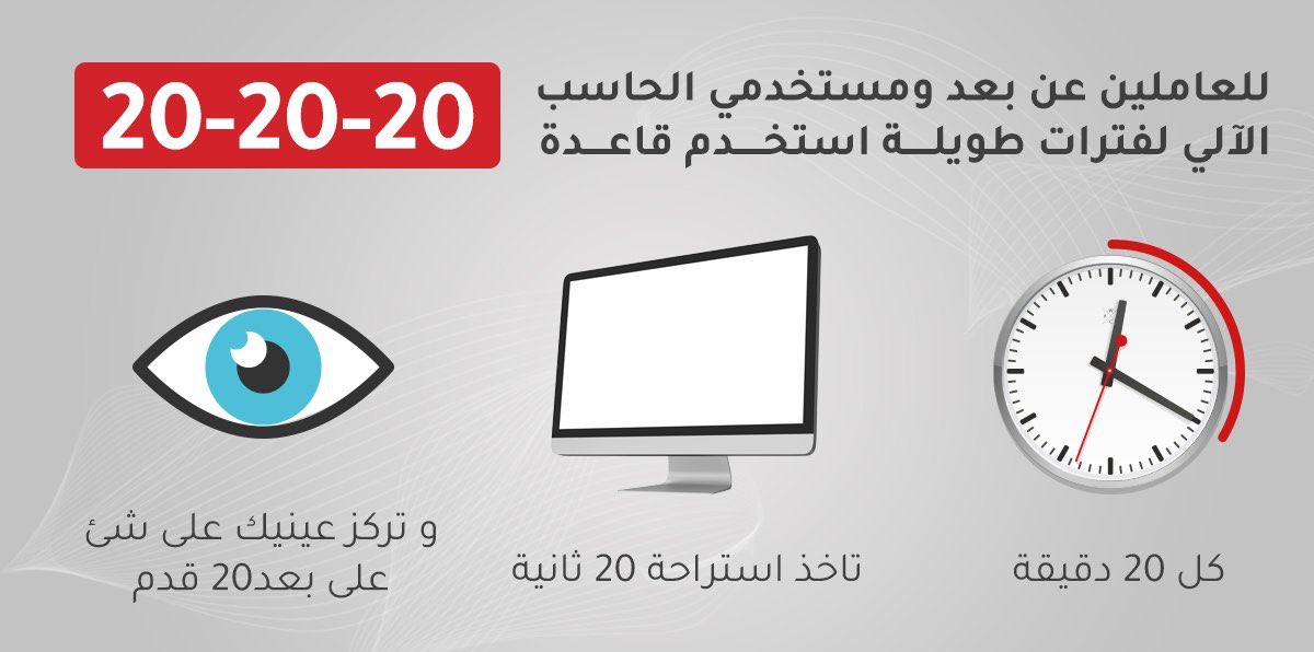 ٣ / زيادة الرمش ، حيث يساعد في ترطيب العين كذلك وإستخدام الوضعية الصحيحة للجلوس بجعل المسافة بين عينيك والشاشة ٥٠ - ٧٠ سم