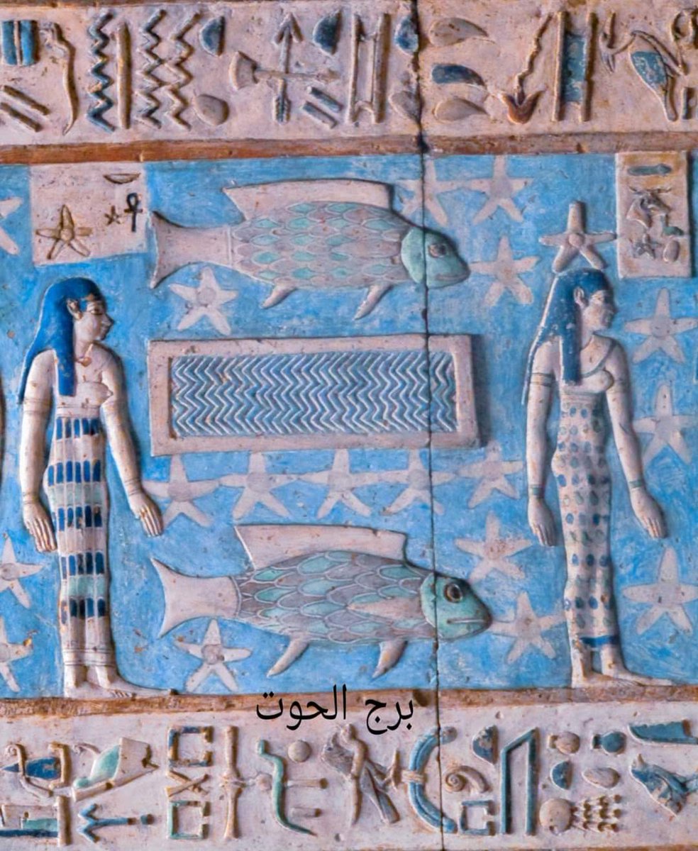 ويوجد في داخل الدائرة علامات الأبراج الأثني عشر وصور الدلو الذي علي شكل رجل يسكب الماء من انائين والأسد علي هيئة الأسد يدوس علي حية 👇