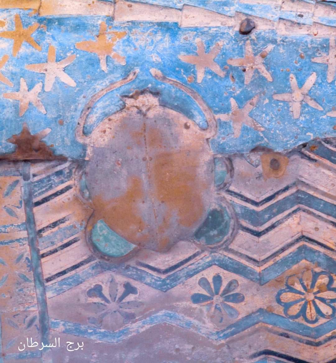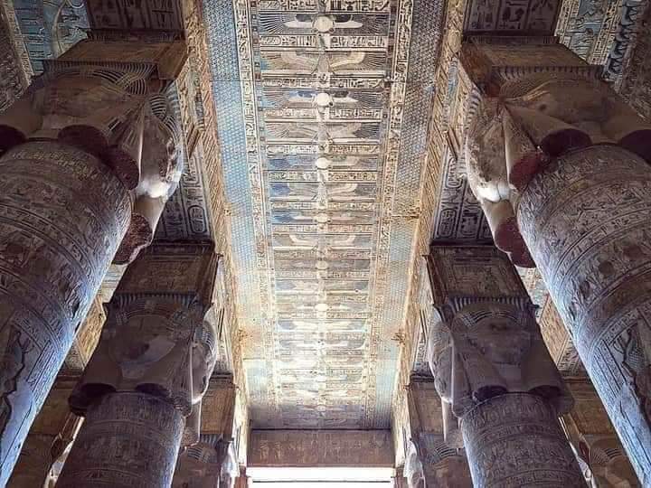 10-والبرج عبارة عن قطعة دائرية منحوتة من الحجر الرملي وتم عمل نسخة من البرج ووضعت في نفس مكانها في معبد دندرة😡وبرج دندرة عبارة عن دائرة تمثل القوس السماوي يحملها أربعة الهة في شكل سيدات يمثلن أعمدة وأركان السماء أو الإتجاهات الأربعة الأصليةوبينهم حشر ثمانية أشكال جالسة بهيئة صقر