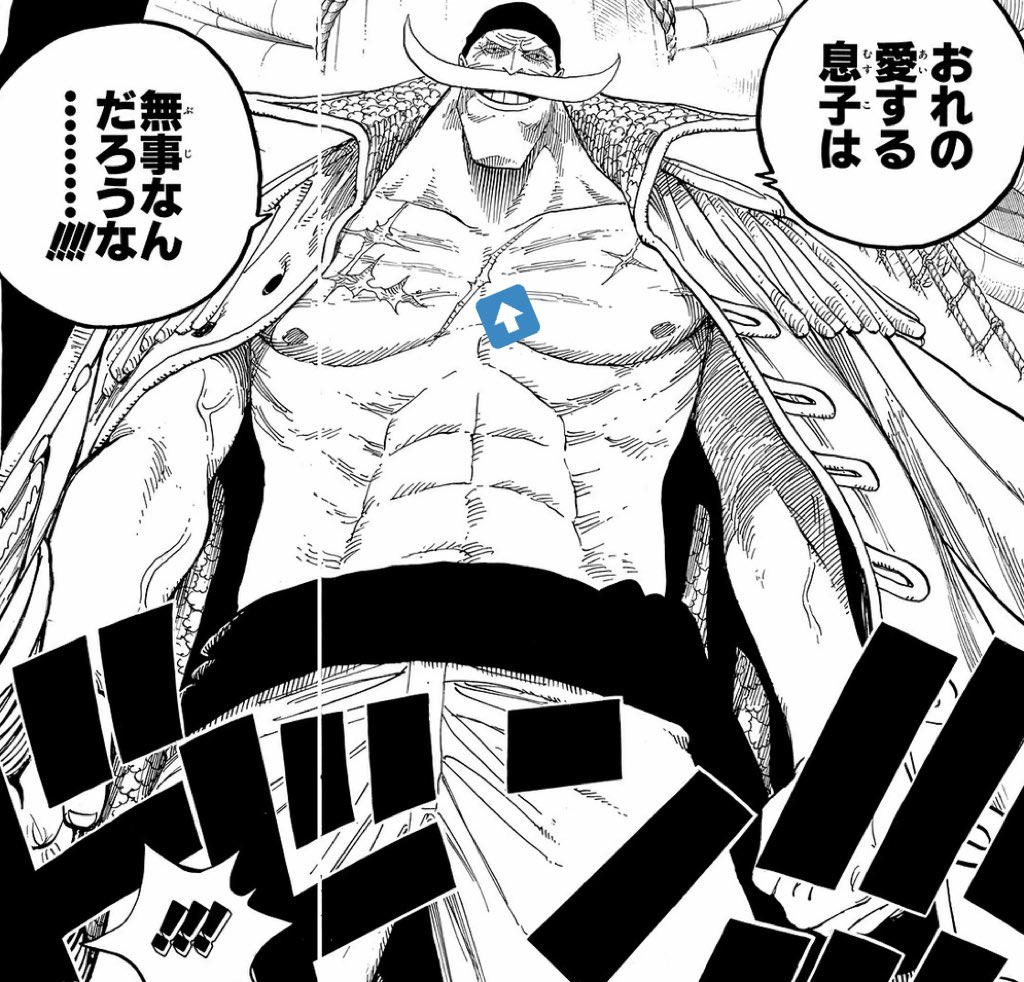 الجرح الذي على صدر اللحية البيضاء، كان بسبب ملك القراصنة روجر .