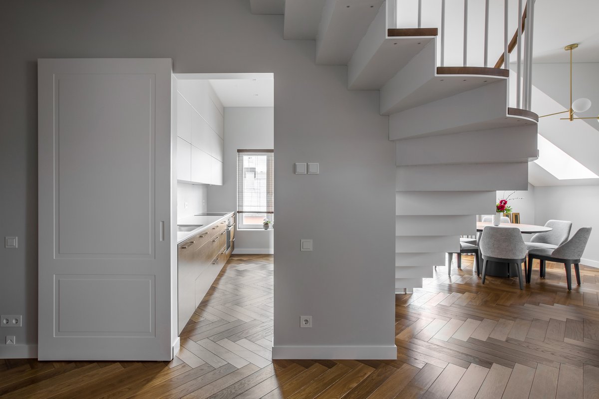 بداية نستعرض الفكرة الأساسية لهذا المشروع في عنصر الاتصال الرأسي (الدرج) أصبح نقطة فصل بين الفراغات وعنصر جمال والأهم أنه تم استغلاله كمنطقة حركة أفقية بين الفراغات ,,,
