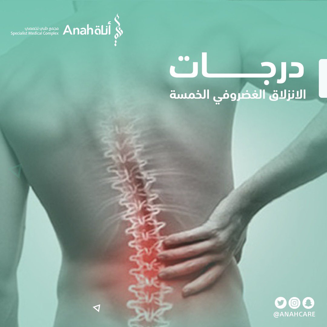 5️⃣الدرجة الخامسة: تعد أصعب مرحلة ويخرج فيها الغضروف تمامًا من الحلقة الليفية ويختنق في القناة التي يجري فيها العصب، ولا يكون مرتبطًا بالحركة، وفي هذه الحالة يكون الألم غير محتمل في الظهر والأطراف، حتى أن المريض لا يكون قادرا على الحركة، وعلاجها الأساسي هو الجراحة.