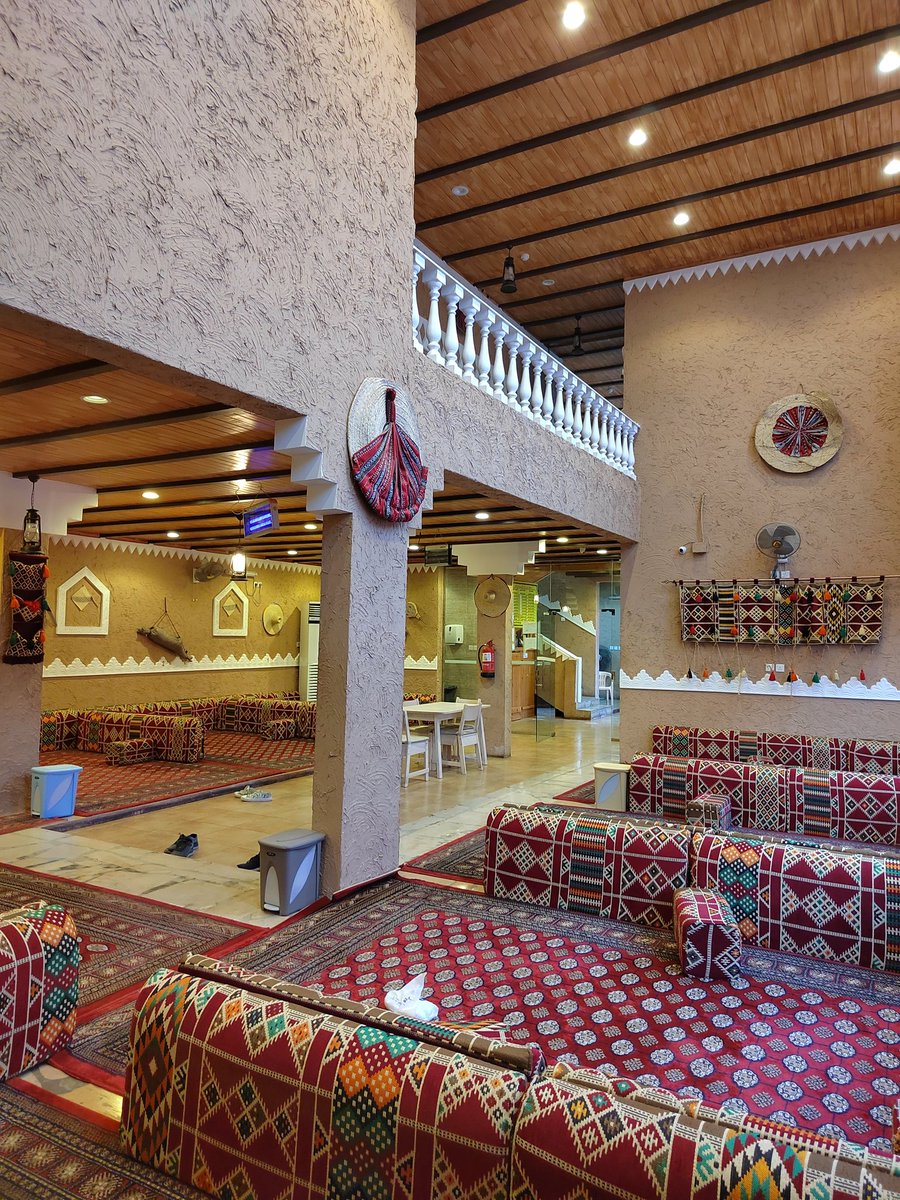الديكور مميز وفيه جلسات ارضيه للعوائل والأفراد