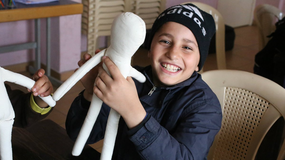 ليست القصة اهداء بحتا ، وانما يشترك اليتيم في صنع دميته ، ليرسم امنيته الصغيرة فتصير دميته ذكرى تشجعه على مقاومة ما يجده من صعوبة العيش