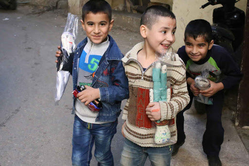 شوفوا فرحة الاطفال الفقراء بالالعاب
