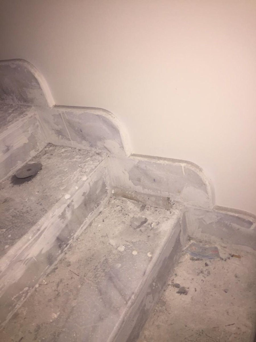 الزاوية الداخلية اسفل الدرجة غالبا تكون صعبة النظيف . لذا فضلت ان إغلق ٦٠ سم منها ببلك مع التليس .لذا إذا احببته إغلاقها فنفذها وقت العظم . فتنفيذ هالامور الصغيره بعد خروج المقاول يعتبر استنزاف للمال و الوقت