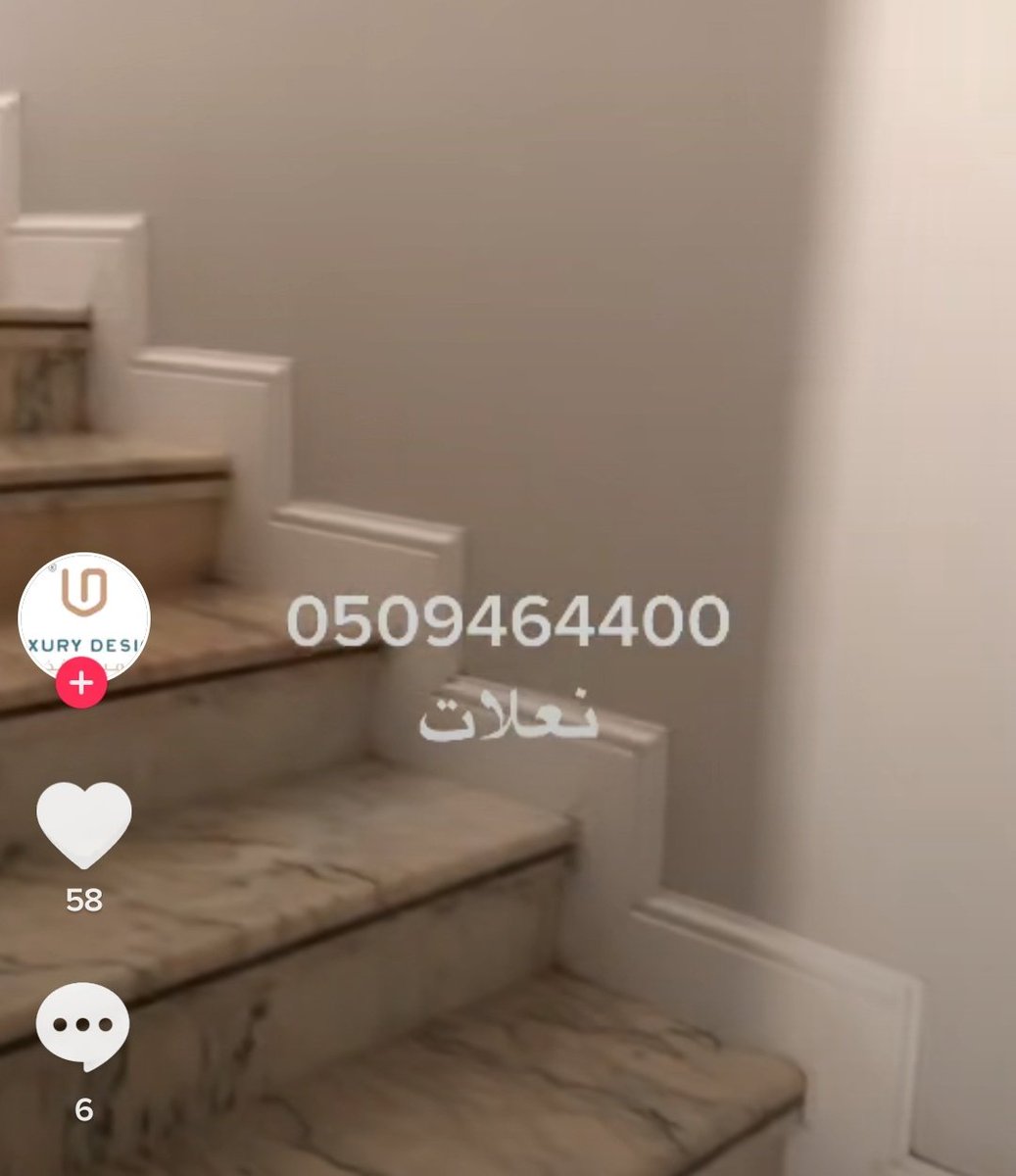 هناك نقطه مهمه وهي بلاط رخام الاستراحه هيكون بالغالب بلاط جاهز 30 في 60 والاجمل منه 60 في 60 والافضل وهو الذي انا عملته قصيت لوح كامل للاستراحه ليكون بشكل قطعه واحده علما ان قص اللوح اغلى من المقاسات الجاهزه