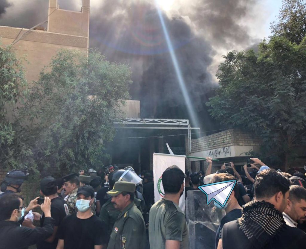 حرق مقر الفرع الخامس للحزب الديمقراطي الكوردستاني في الكرادة ...1️⃣