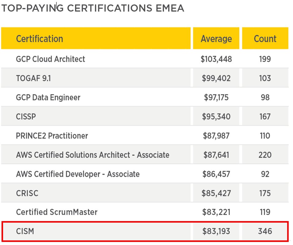 الجدير بالذكر أن رابطة ISACA تشرف على عدد من الشهادات الأخرى المشهورة مثل COBIT ، CRISC ، CISA وغيرها. كما تصدر مجلة خاصة لأعضاءها.