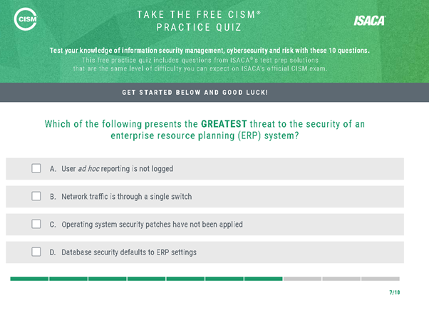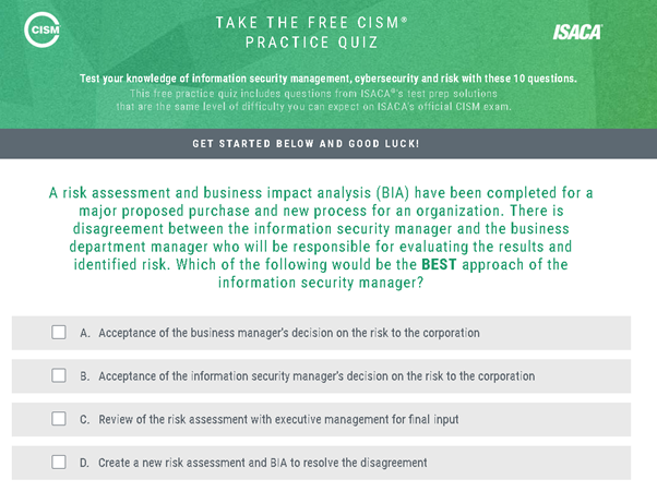 4-تمرن على الاختبارات المتاحة من قبل رابطة ISACA وتذكر أن الاختبار غير مكرر فالفهم واختبار ما تتعلمه هو المطلوب.