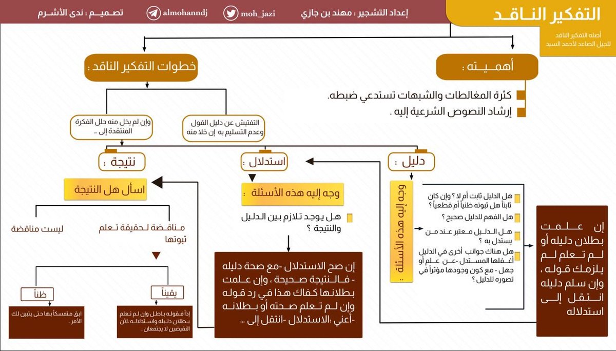 وما عنده حس نقدي سليم وعقل بيفكر صح وبيربط الأمور صح وبيعرف يرجح الأدلة ويقارن بينها "ارجع للتويتة السابقة ودور المجتمع أنه يخليك مجنون XD"