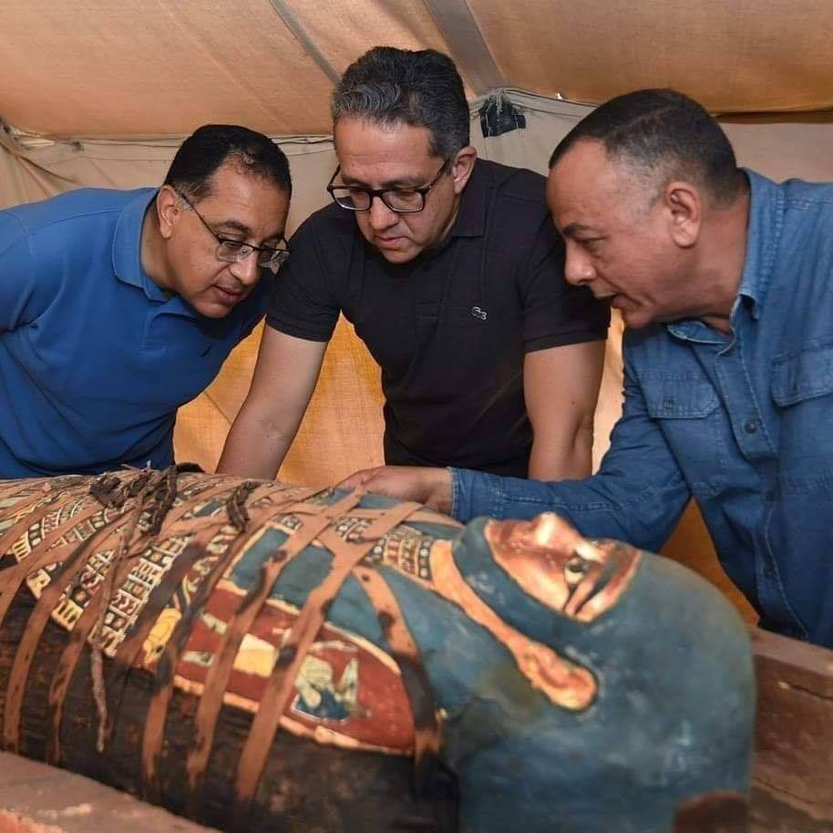 آبار الدفن الثلاث الجديدة التي تم العثور عليها وبداخلها عدد ضخم من التوابيت الملونة وعدد من اللقى الآثرية المذهبة وسوف يتم الإعلان عن هذا الكشف خلال الأسابيع القليلة القادمة في مؤتمر صحفي 👇