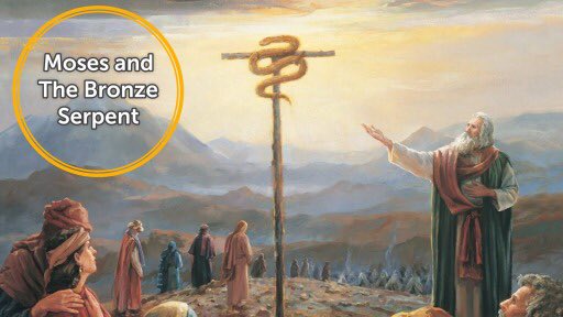حية من البرونز ويضعها على عمود في وسط القوم ويخبرهم بأنه من نهشته حية ونظر إليها فإنه ينجو بإسم الله