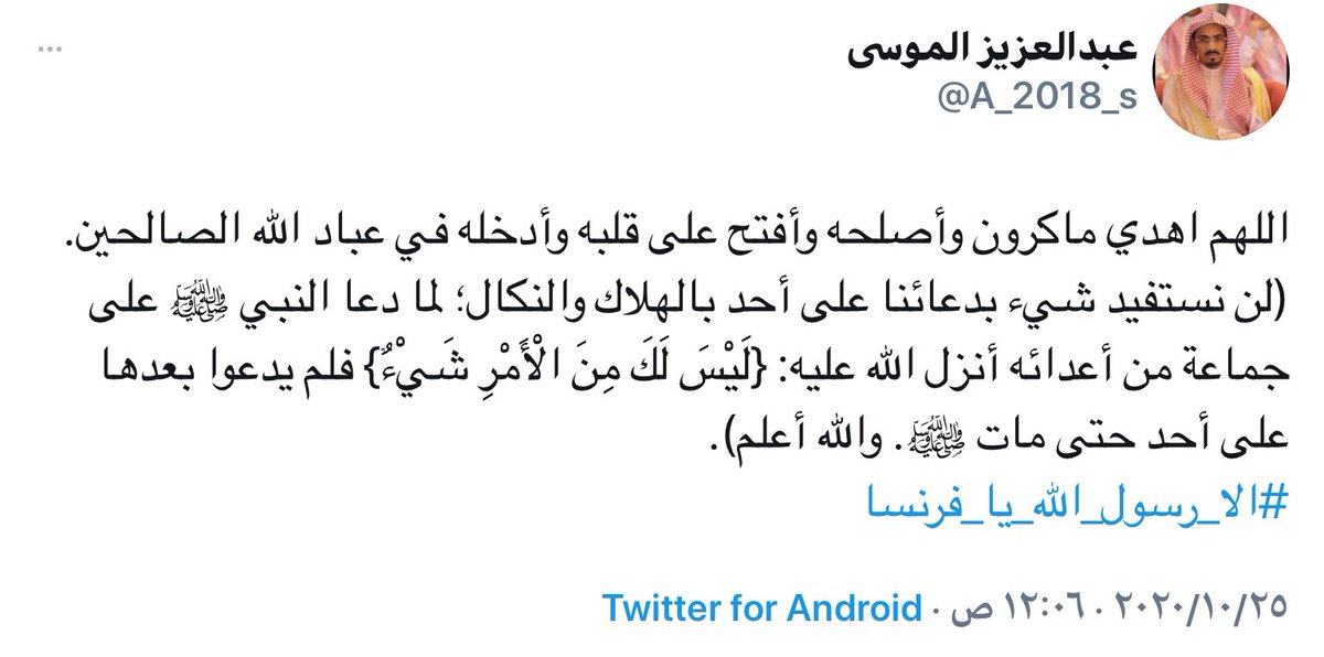 هنا نجمع صور تغريدات مخزية في قضية اعتداء فرنسا على مقام النبي ﷺ