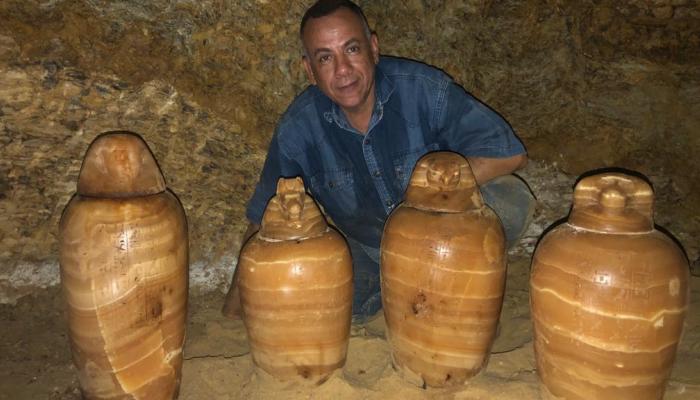 كشفت اليوم البعثة الأثرية المصرية العاملة بمنطقة آثار الغريفة بتونا الجبل بمحافظة المنيا عن مقبرة المشرف على الخزانة الملكية "بادی است" بداخلها تماثیل حجرية ولقي أثرية في حالة جيدة من الحفظ تتكون المقبرة من بئر للدفن بعمق 10 أمتار يؤدي إلى حجرة كبيرة بها نيشات محفورة في الصخر👇