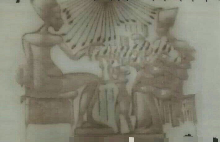 هات بطاقتك وركز في ضهرها هتلاقي اللوحة دي من "تل العمارنة" فيها الملك "اخناتون" مع زوجته "نفرتيتي"يداعب إحدى بناته ويعلوهم آتون يتغمدهم بأشعته الممتدة❤👏