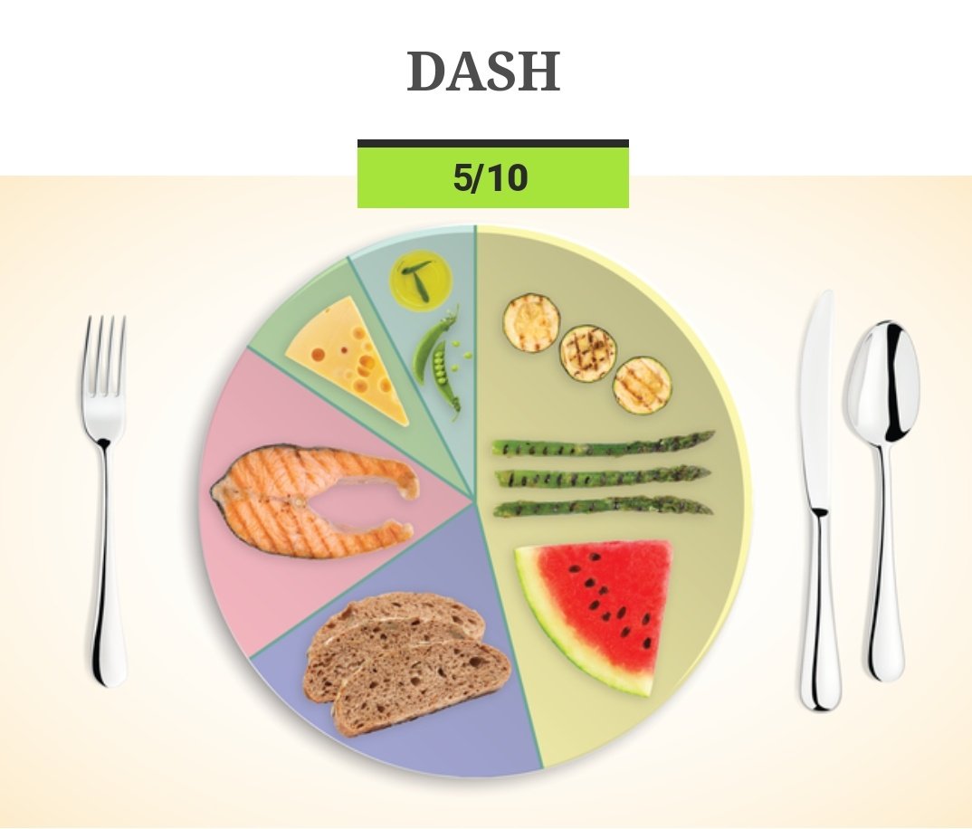 اختصار لـ "الأساليب الغذائيةلوقف ارتفاع ضغط الدم"ويحتوي على نسبةعاليةمن الفواكه والخضروات والحبوب الكاملةومنتجات الألبان قليلةالدسم والبروتينات الخاليةمن الدهون،زيوت صحيةومكسرات وبقوليات.ستقلل من تناول الحلويات والدهون المشبعة والصوديوم، فينخفض ضغط الدم والكوليسترول.