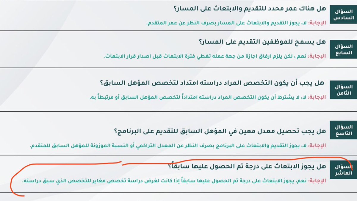 ٣-الحصول على قبول مباشر غير مشروط في إحدى التخصصات والمؤسسات التعليمية المحددة